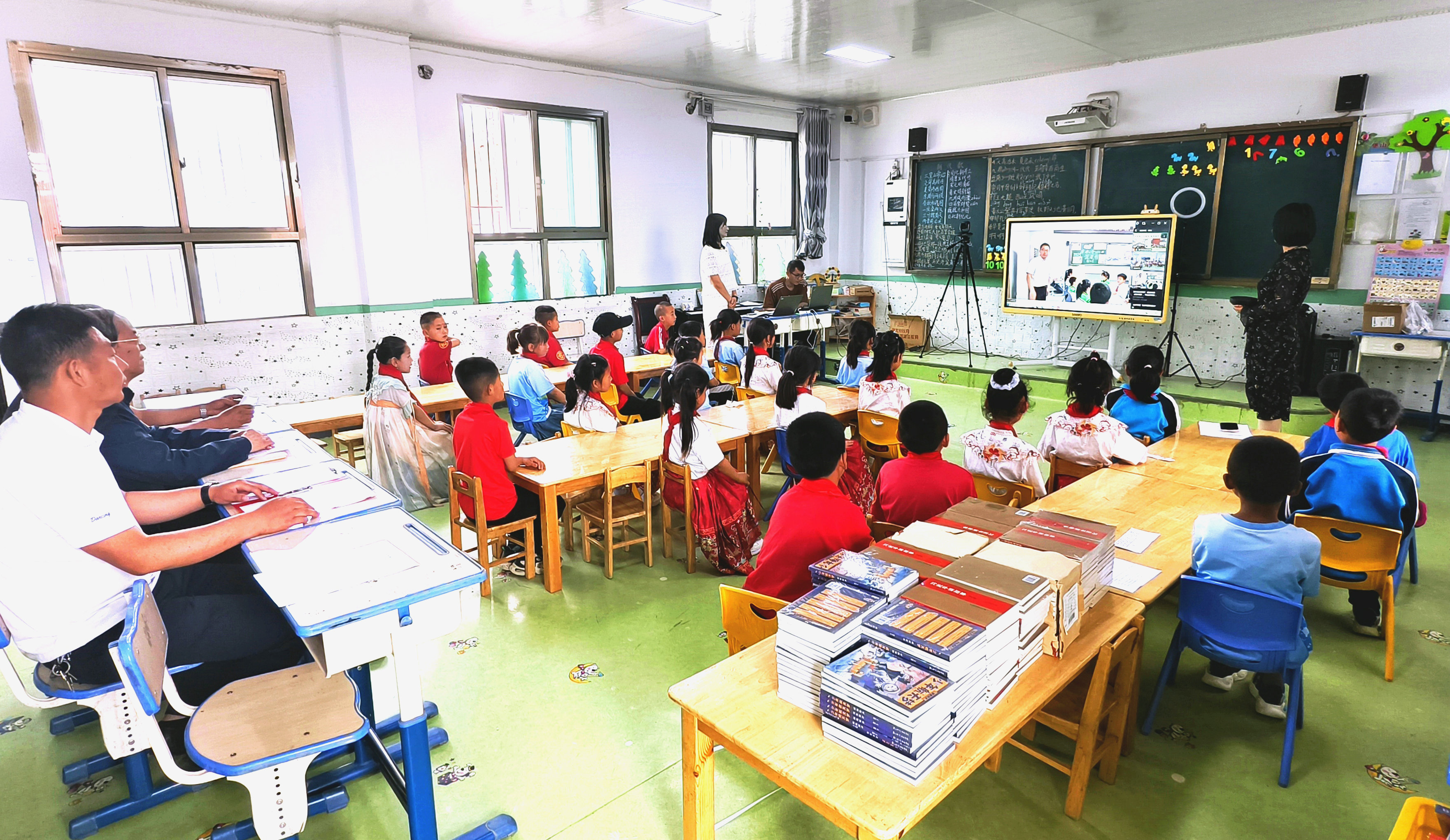 端午节和六一儿童节来临之际,5月29日,一场跨越千里的线上文化交流活动在天津经济技术开发区第一小学(泰达一小)与张家川县堡山小学之间温情上演。两地师生虽相隔千里、但“情谊相通”,借助“云端连线”,共同举办了“庆端午”主题文化互动活动。据了解,自2019年东西部协作帮扶工作以来,此项活动已连续开展6年。当天,活动邀请张家川县关工委常务副主任、县政协原主席李栋一和县委组织部、团县委相关负责人参加,并现场为堡山小学转赠了天津市滨海新区捐赠的图书,助力“书香张家川”建设。