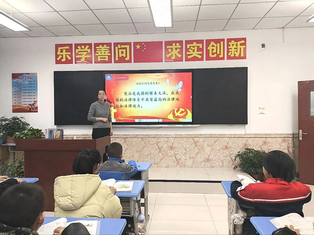 第四小学关工委围绕“尊崇宪法,伴我成长”主题,组织学生代表演讲、教师代表宣读宪法节选并讲解法治知识;各班级在五老志愿者协助下,通过 PPT、普法视频、互动讨论开展主题班会,让学生明晰宪法地位与日常遵法常识。