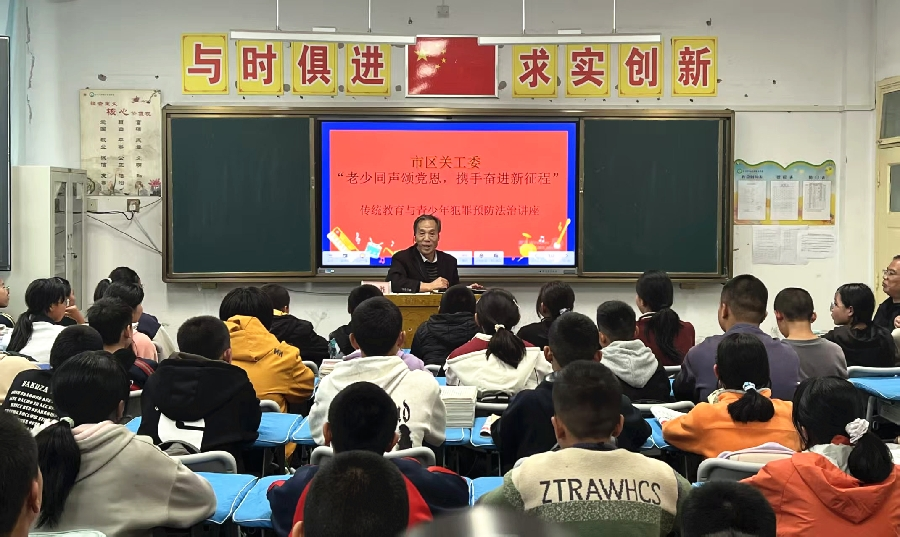 课上,红古区人民法院原纪检组组长、区关工委“五老”报告团成员谈应胜以“传统教育与青少年犯罪预防”为题,用真实生动的案例,通过情景式的问答引导同学们主动思考如何运用中华优秀传统文化提升自身素养,明确日常行为中的“红线”与“底线”,从而在尊法学法守法用法中培养法治意识,维护好自身权益。谈应胜讲得认真,同学们听得仔细,活动现场不时传来同学们互相交流探讨的声音。此次法治讲座的开展,对同学们弘扬中华优秀传统文化,增强遵纪守法意识,营造文明、平安、和谐的校园环境起到了很好地促进作用。下一步,市关工委将继续联动多方力量,以形式多样的主题活动筑牢未成年人法治防线,营造全社会共同守护青春成长的良好氛围。