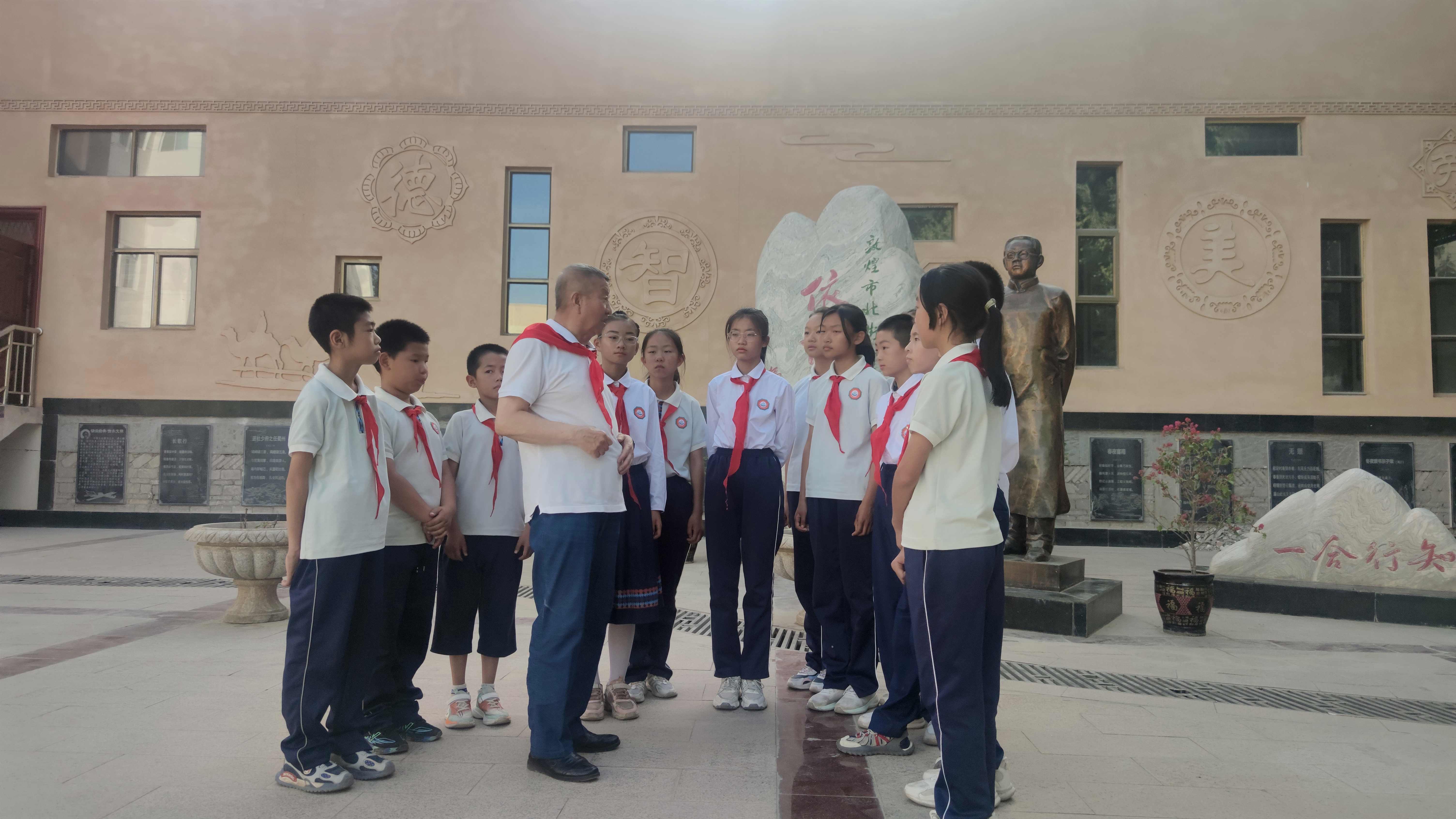 深耕宣讲育新人,让红色基因“传”下去。作为敦煌市关工委文艺宣传组组长、市教育局关工委常务副主任,李明华始终把青少年思想道德建设抓在手上。他常说:“宣讲不是照本宣科,要让孩子们听得进、记得住、用得上。”为此,他带领退休党组织与“五老”宣讲团成员反复打磨课程,探索出“党建+文化+实践”的宣讲模式。针对小学生,用“小红军送鸡毛信”“敦煌儿童团放哨”等本土故事串联党史;针对中学生,组织老党员与思政教师结对,开发“从敦煌文献看中国精神”“西路军在敦煌的红色印记”等跨学科课程,厚植家国情怀。他特别关注特殊群体。组建“银龄护苗宣讲队”,定期到学校开展“爷爷奶奶讲红色故事”“非遗剪纸伴成长”等主题活动。