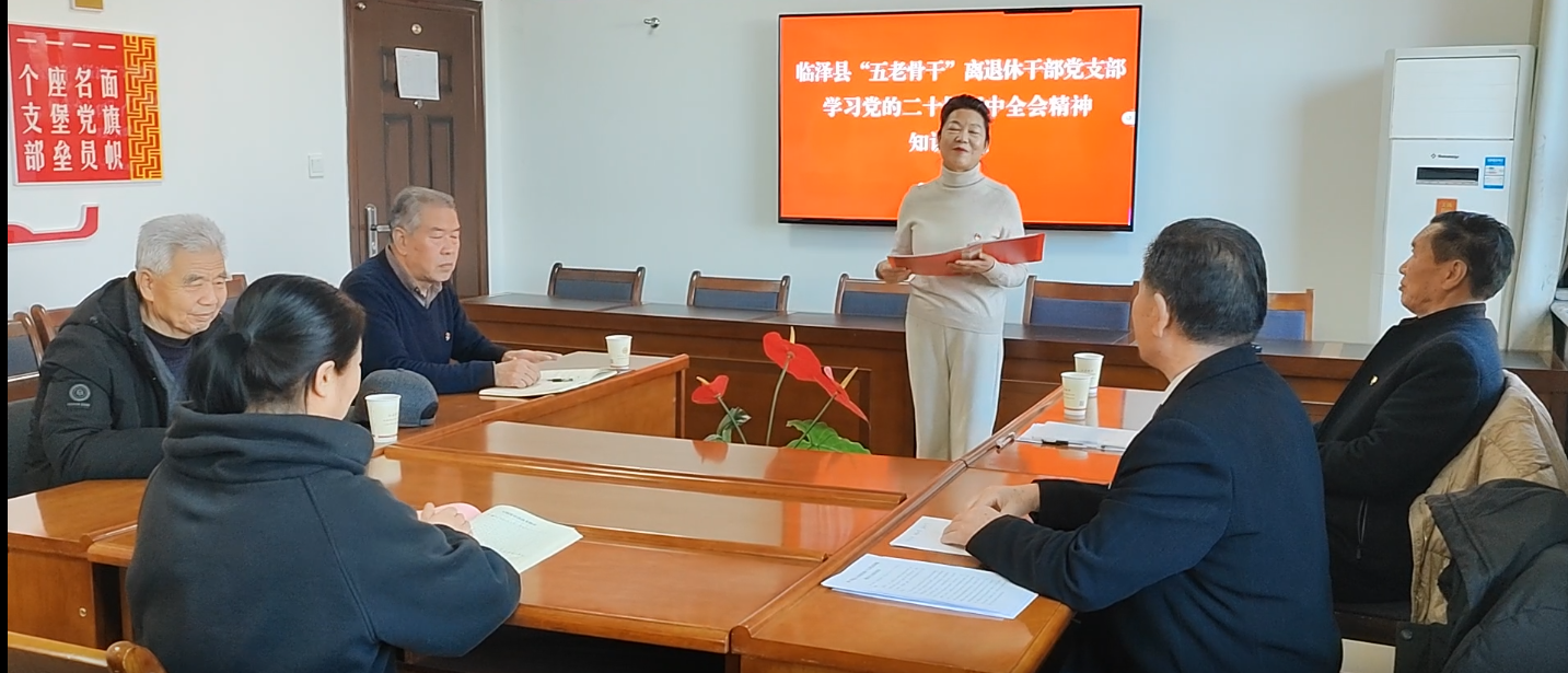 为深入学习贯彻党的二十届四中全会精神,临泽县“五老”骨干离退休干部党支部积极发挥示范引领作用,通过整理印发学习要点、组织问答互测、集中观看专家辅导报告、开展专题座谈研讨以及主动上门送学辅导等多种形式,组织支部党员开展系统性、多层次的学习活动,扎实推动全会精神入脑入心、见行见效。