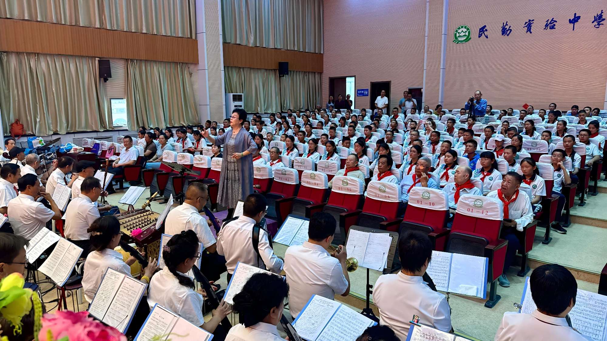 在纪念中国人民抗日战争暨世界反法西斯战争胜利80周年之际,民勤县关工委联合县教育局在实验中学举办抗战经典红歌老少大联唱活动,教育引导广大青少年深刻感悟伟大抗战精神,汲取奋进力量,立志为实现中华民族伟大复兴而接续奋斗。“五老”代表与青少年学生共计300余人参加了活动。