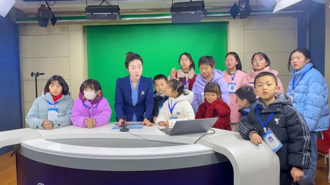 为了让小记者们更直观了解电视节目制作流程,融媒体中心的记者和主持人带领他们参观演播室。一走进演播室,先进的设备和场景便吸引了小记者们的目光,他们纷纷发出惊叹。制作老师详细介绍了演播室各个区域,包括导播间、灯光控制室等,并讲解其功能和作用。随后,主持人带领小记者进入导播间进行新闻播报。站在镜头前,小记者们起初有些紧张,但在主持人的鼓励和指导下,逐渐放松,表现得越来越自信。