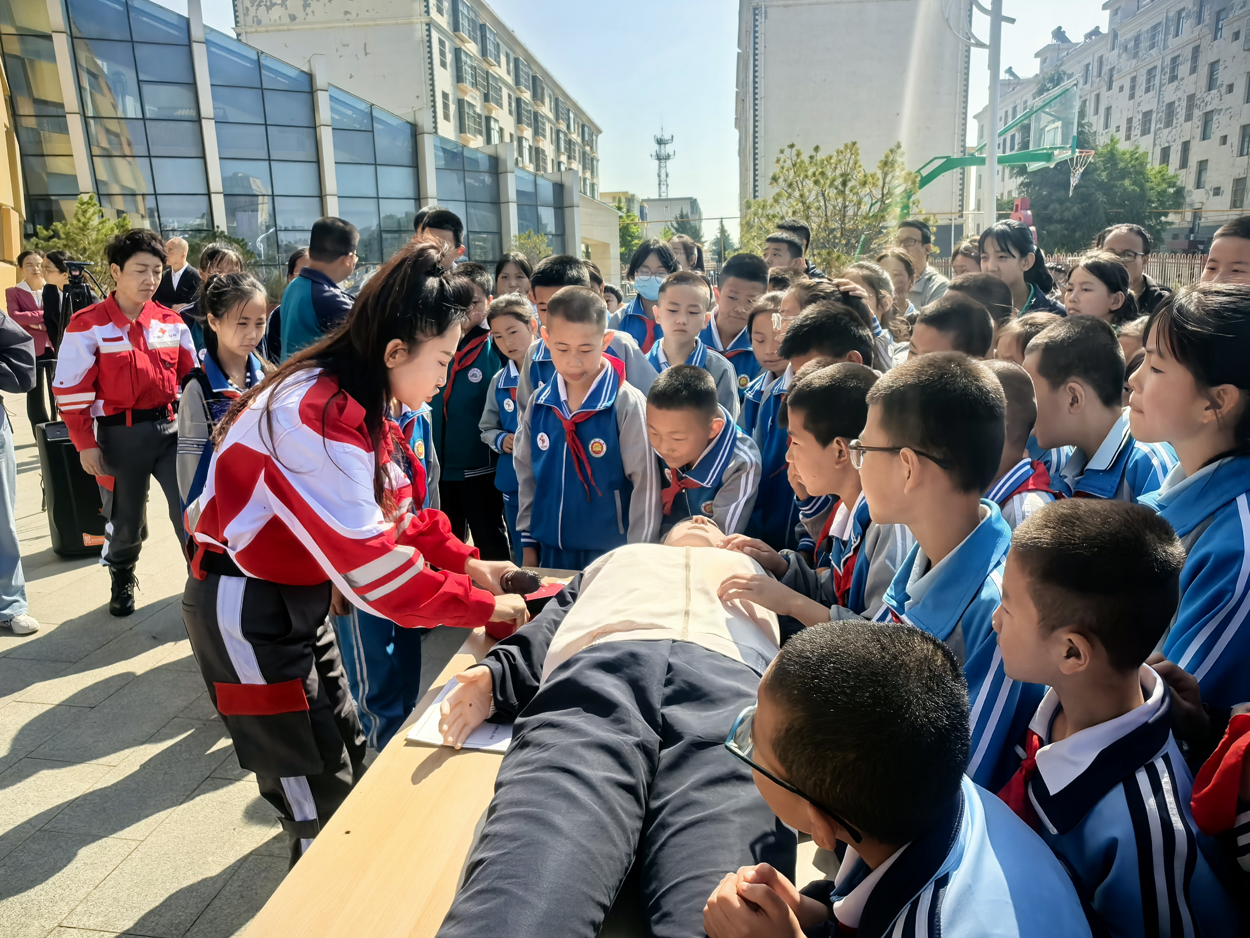 在体验趣味科学实验过程中, 孩子们围在老师身旁,在“制造传输静电”实验中紧盯电荷转移轨迹,在探索中解锁静电场的奇妙原理,现场洋溢着探索科学的欢乐与好奇。随后,还开展了止血、海姆立克急救法等急救知识培训。
