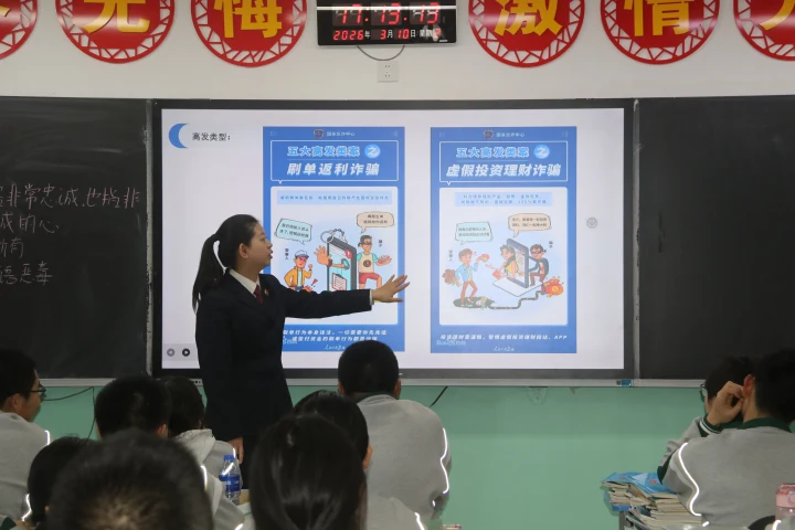 宣讲过程中,政法干警们紧贴青少年认知特点,创新采用“以案说法、以案释法”的暖心形式,用真实鲜活的身边故事诠释法律,让法治理念真正入脑入心。宣讲内容聚焦道路交通安全、禁毒防毒常识、预防校园欺凌、防范电信网络诈骗等青少年成长高频风险点领域,针对性极强,实用性十足。干警们结合典型案例,细致剖析各类违法违规行为对青少年成长的危害,拆解风险防范技巧,耐心传授遭遇侵害时的自救自护方法,引导广大学生树立正确法治观念,自觉学法、知法、守法、用法,明辨是非、远离不良诱惑,全面提升自我保护能力,扣好人生“法治扣子”。学生们全程投入、互动积极,纷纷表示收获颇丰,不仅学到了实用的法治安全知识,更掌握了有效的自护技能,今后将自觉争做尊法学法守法用法的新时代好少年。